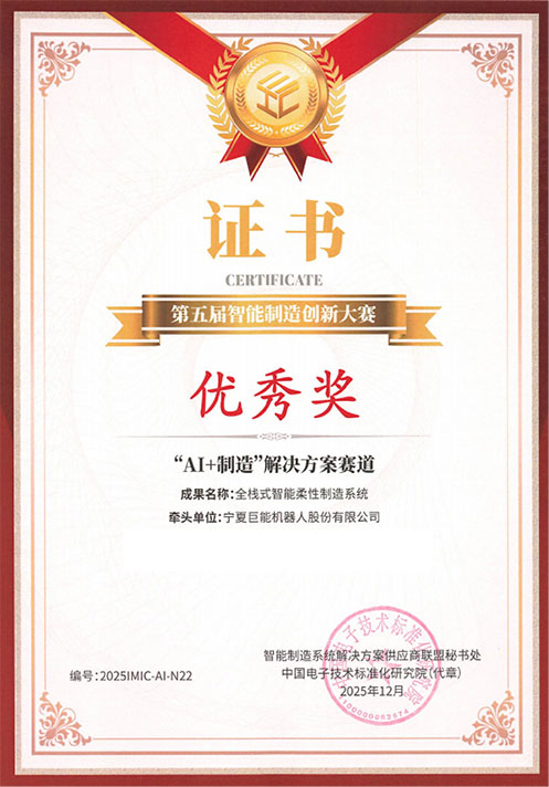 12月26日至27日,第五屆智能制造創(chuàng)新大賽“AI+制造”解決方案賽道總決賽在浙江省衢州市成功舉辦。巨能機器人憑《全棧式智能柔性制造系統(tǒng)》榮獲本次大賽優(yōu)秀獎。