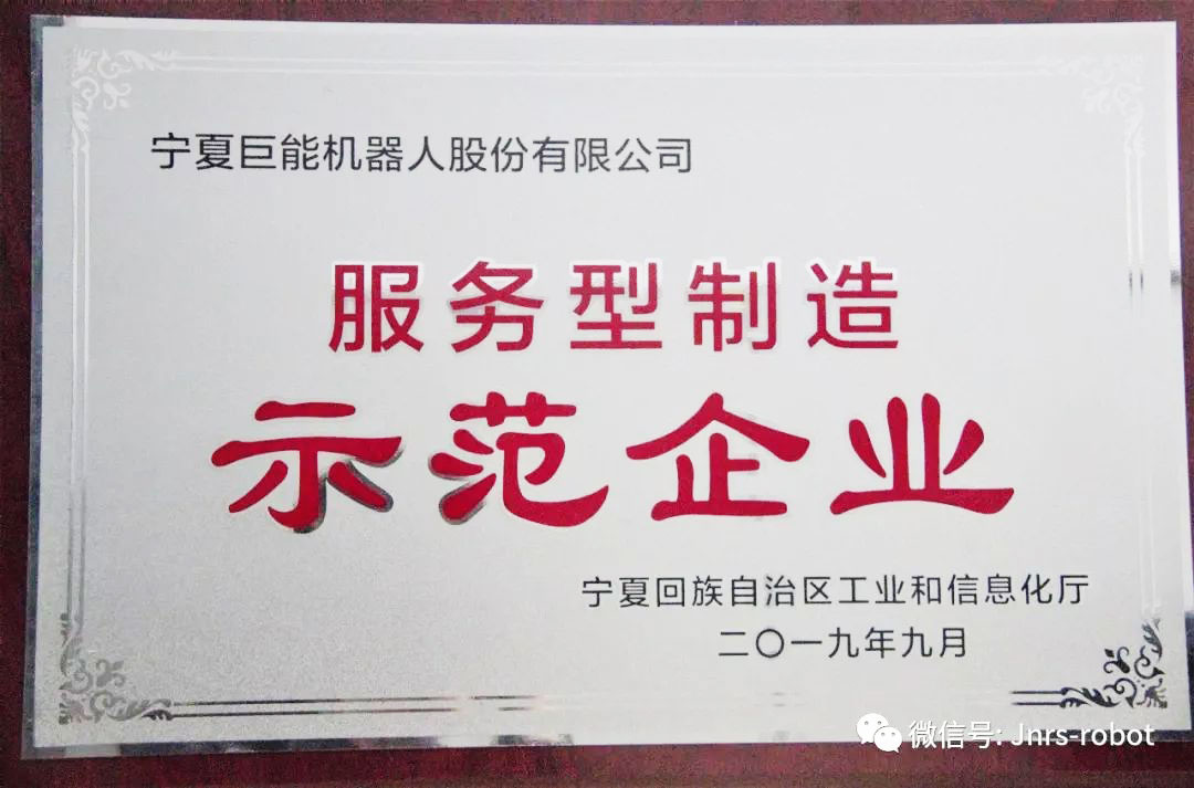 近日,經(jīng)自治區(qū)工信廳評選,寧夏巨能機器人股份有限公司被確定為服務(wù)型制造示范企業(yè),獲得授牌。