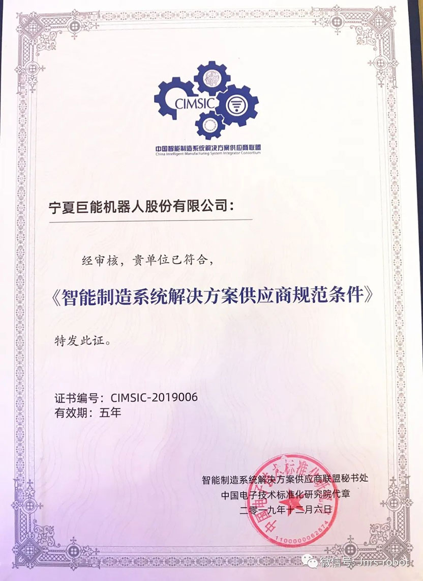 全國32家符合《工業(yè)機器人行業(yè)規(guī)范條件》之一、全國58家智能制造系統(tǒng)解決方案供應商之一。這兩項國家工信部的認可,標志著巨能機器人走進了快速發(fā)展的新階段!巨能機器人將不斷以技術(shù)創(chuàng)新,開發(fā)更好的產(chǎn)品和解決方案,與客戶攜手共贏!