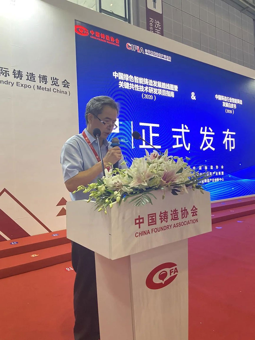 8月19日上午10:45,在3H館3B58,由中國(guó)鑄造協(xié)會(huì)、中國(guó)智能鑄造產(chǎn)業(yè)聯(lián)盟組織編寫的《中國(guó)鑄造行業(yè)智能制造發(fā)展白皮書2020》和《中國(guó)綠色智能鑄造發(fā)展路線圖暨關(guān)鍵共性技術(shù)研發(fā)項(xiàng)目指南(2020)》發(fā)布儀式啟動(dòng)。發(fā)布儀式由中國(guó)智能鑄造產(chǎn)業(yè)聯(lián)盟秘書長(zhǎng)/國(guó)家智能鑄造產(chǎn)業(yè)創(chuàng)新中心總經(jīng)理?xiàng)钴娭鞒?,溫平副?huì)長(zhǎng)發(fā)表講話。