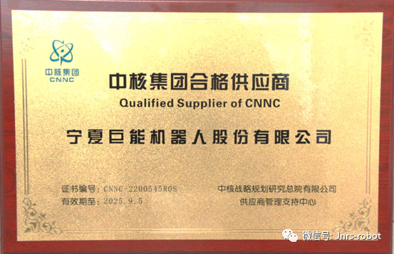 近日,中核集團(tuán)委托興原認(rèn)證中心有限公司,依據(jù)中核集團(tuán)合格供應(yīng)商評(píng)價(jià)的有關(guān)規(guī)定,從基本條件、產(chǎn)品與服務(wù)質(zhì)量、技術(shù)能力、質(zhì)保能力、商務(wù)(財(cái)務(wù))能力等方面對(duì)巨能機(jī)器人公司進(jìn)行評(píng)審。經(jīng)評(píng)審,我公司各方面能力滿足中核集團(tuán)供應(yīng)商要求,具備合格供應(yīng)商資質(zhì),具有向中核集團(tuán)總部及下屬單位提供評(píng)審范圍內(nèi)產(chǎn)品(或服務(wù))的資格。