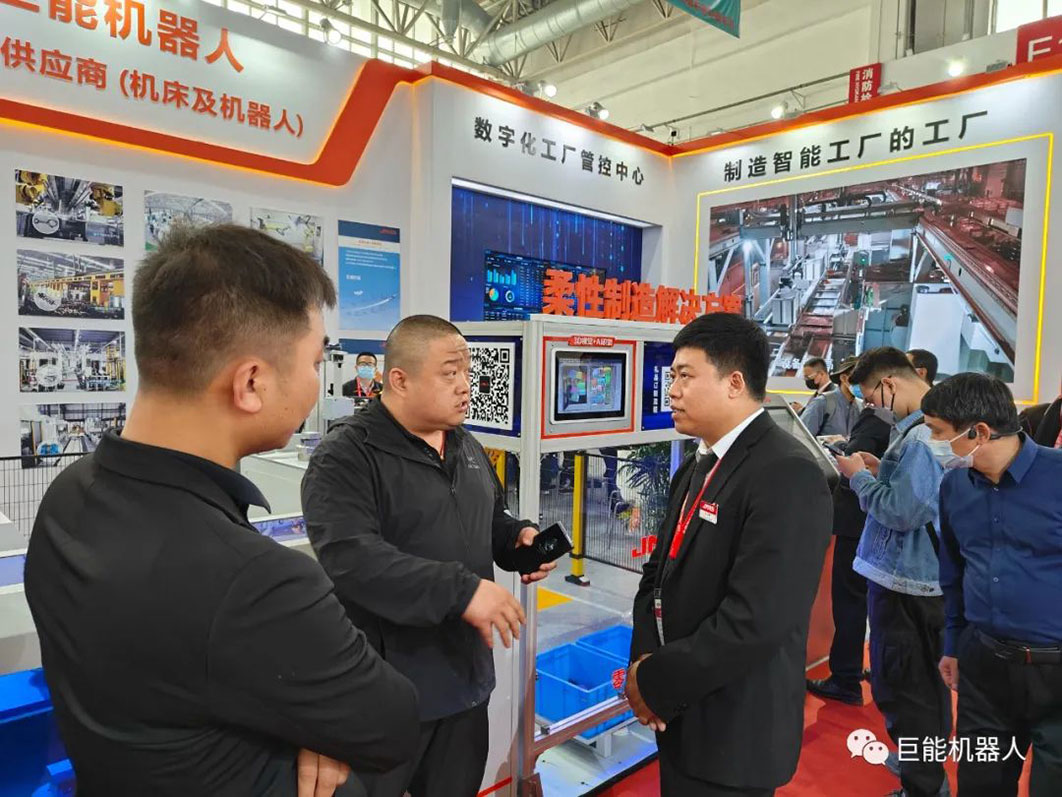 開展首日,位于E館的巨能機器人的展位上人頭攢動,融合通用機床、柔性加工、自動裝卸、智能調(diào)度、自動排產(chǎn)、通用夾具于一體的通用型柔性制造系統(tǒng)解決方案,對于破解多品種少批量生產(chǎn)方式的來賓們給出了“剛?cè)岵钡膱鼍盎鉀Q方案。