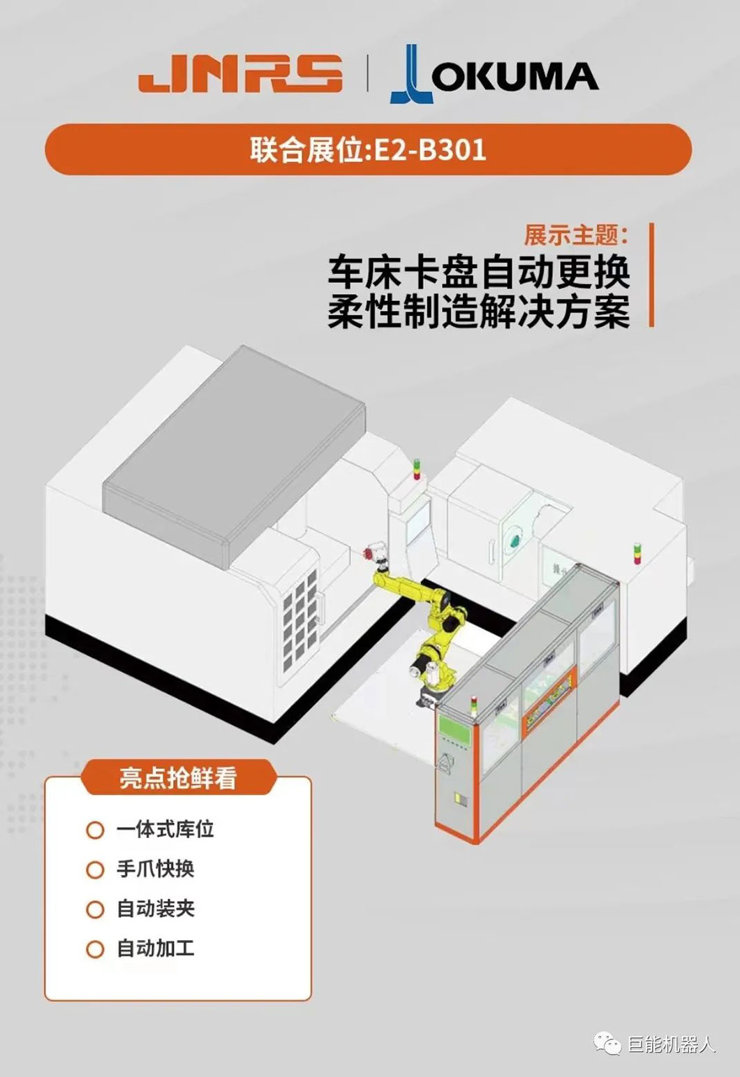 在CIMT2023日本展區(qū)E2-B301展位,上海大隈展出了1套自動化單元,這是上海大隈面對智能制造推出的車床卡盤自動柔性制造解決方案,其具有“一體化庫位、手爪快換、自動裝卡、柔性加工”等特點,實現(xiàn)了車床、加工中心、料庫的柔性無縫銜接,為智能制造貢獻(xiàn)了一個MINI版的柔性制造產(chǎn)線解決方案。