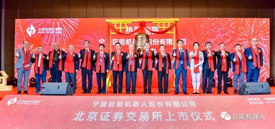 2023年5月12日上午,隨著“巨能股份871478”開(kāi)市寶鐘的響起,在政府領(lǐng)導(dǎo)、合作伙伴、中介機(jī)構(gòu)、新聞媒體等社會(huì)各界的共同見(jiàn)證下,寧夏巨能機(jī)器人股份有限公司正式登陸北交所發(fā)行上市,成為全面注冊(cè)制改革后寧夏較早上市企業(yè),北交所迎來(lái)寧夏籍的專(zhuān)精特新“小巨人”企業(yè)。