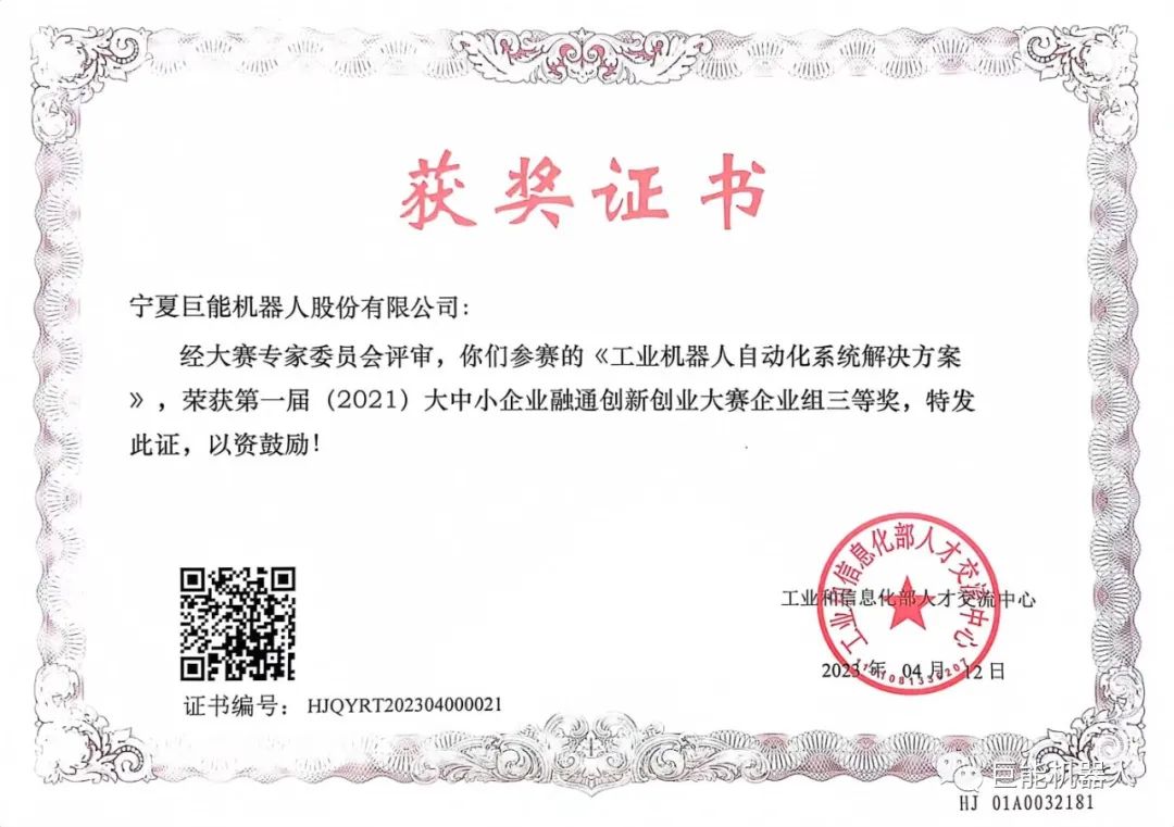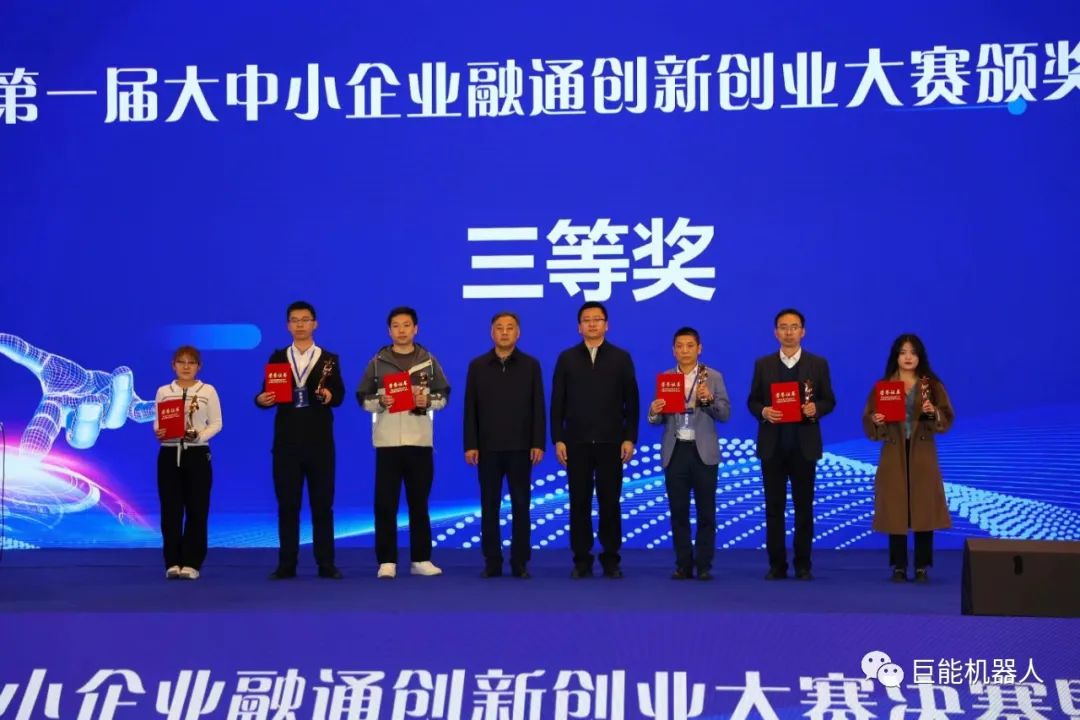 4月12日,由工信部人才交流中心、黑龍江省工信廳主辦的第一屆大中小企業(yè)融通創(chuàng)新創(chuàng)業(yè)大賽決賽暨頒獎儀式在哈爾濱舉行。大賽吸引了來自浙江、天津、重慶、寧夏等全國多地企業(yè)和團(tuán)隊(duì)報名參賽,其中通過審核項(xiàng)目達(dá)到260個,最終40個項(xiàng)目入圍總決賽,經(jīng)專家評委現(xiàn)場評選,由巨能股份報送的《工業(yè)機(jī)器人自動化系統(tǒng)解決方案》,榮獲企業(yè)組三等獎。