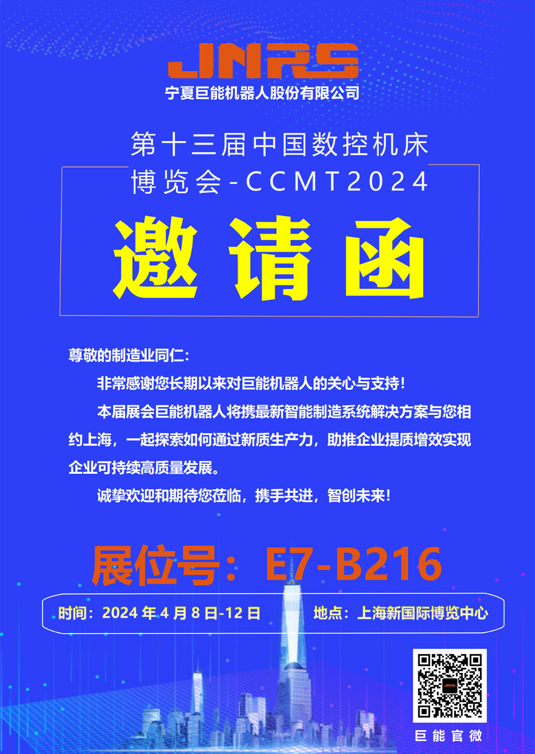 邀請函 | 巨能機器人與您相約CCMT2024,4月8日上海見!