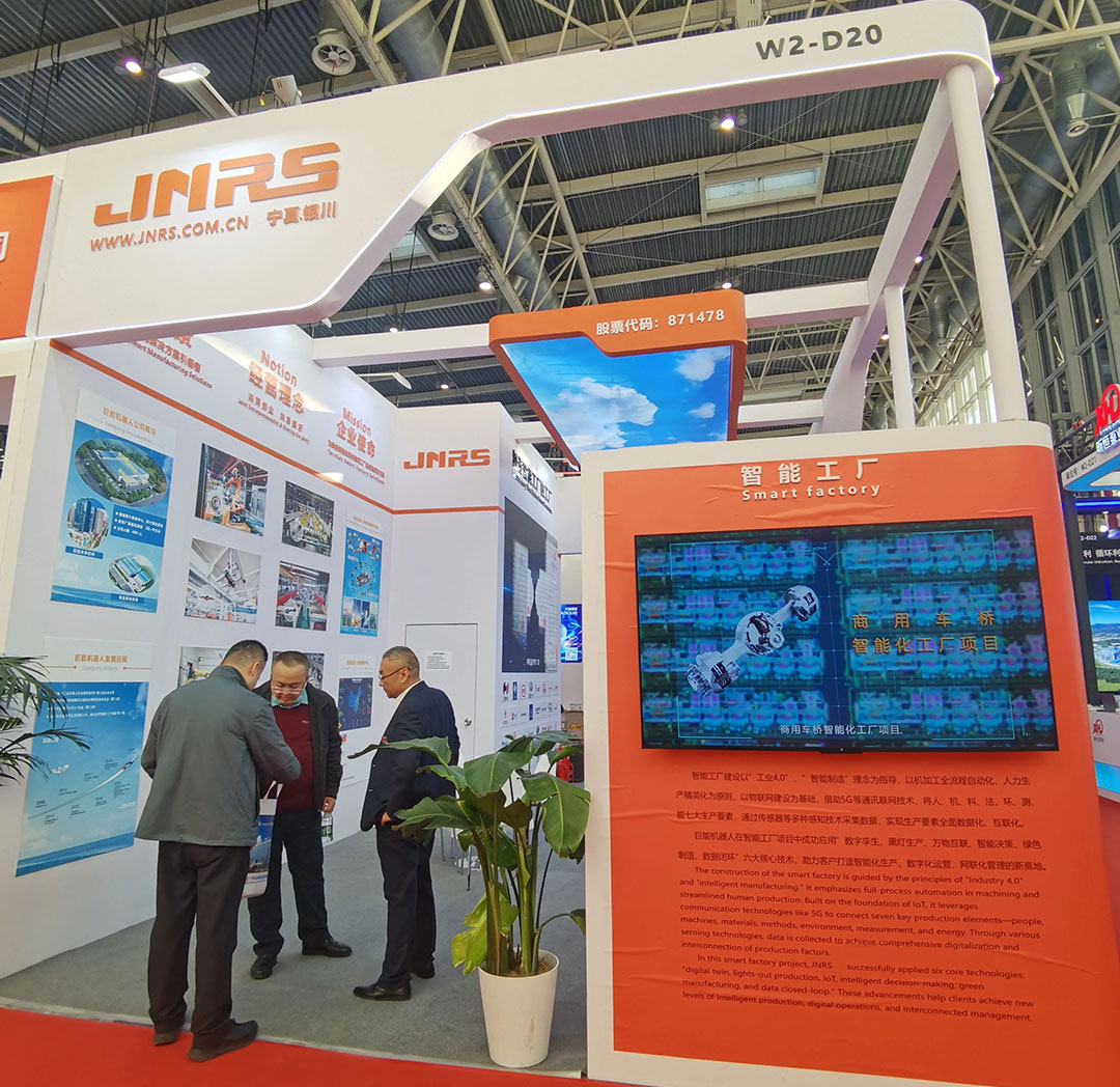 開幕當(dāng)日,寧夏回族自治區(qū)黨委委員、常委、副書記莊嚴(yán)一行蒞臨巨能機器人公司展位指導(dǎo)布展工作,公司總經(jīng)理李志博就公司發(fā)展和參展準(zhǔn)備情況進(jìn)行了詳細(xì)匯報。本屆鏈博會,巨能機器人以“制造智能工廠”為展示主題,設(shè)置智能工廠整體解決方案、柔性制造產(chǎn)線解決方案、智能制造新技術(shù)應(yīng)用解決方案三大板塊,通過眾多特色鮮明的實戰(zhàn)應(yīng)用案例,全面展示公司為制造業(yè)企業(yè)提供智能化產(chǎn)線解決方案的綜合實力。
