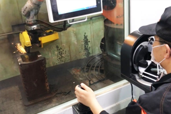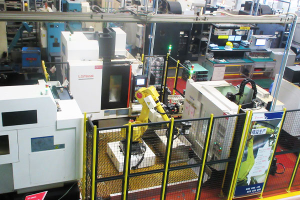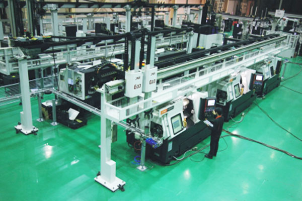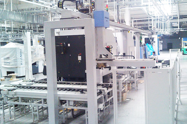 6月,固定安裝工業(yè)機(jī)器人,品字形服務(wù)多臺機(jī)床,形成工作島